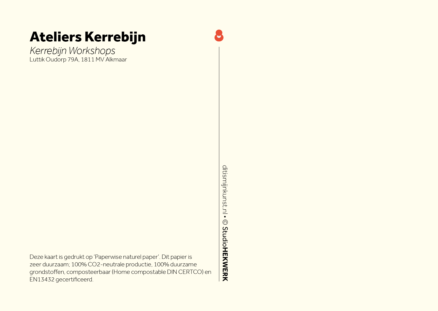 Deze kaart is gedrukt op ‘Paperwise naturel paper’. Dit papier is zeer duurzaam; 100% CO2-neutrale productie, 100% duurzame grondstoffen, composteerbaar (Home compostable DIN CERTCO) en  EN13432 gecertificeerd.
