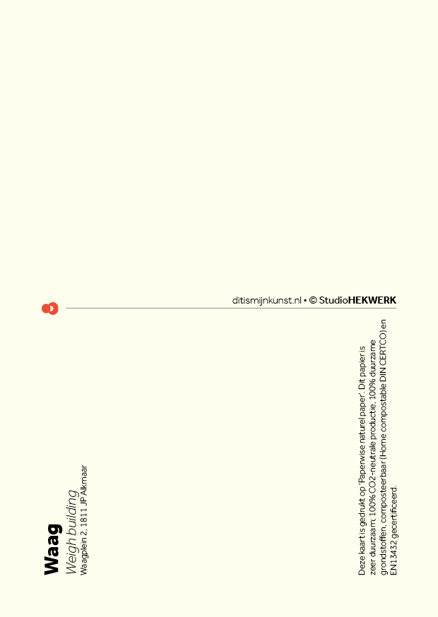 Dubbelzijdig digitaal gedrukte ansichtkaart van de Waag in Alkmaar. Op het Waagplein wordt in de zomer op vrijdag de beroemde Alkmaarse Kaasmarkt gehouden.