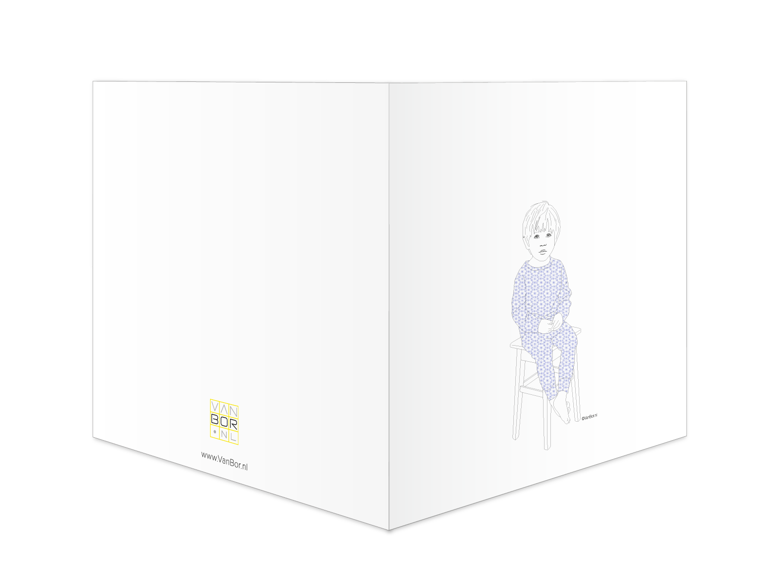 Vierkante dubbele ansichtkaart 130x130mm met envelop, digitaal gedrukt op 300 grams wit papier.