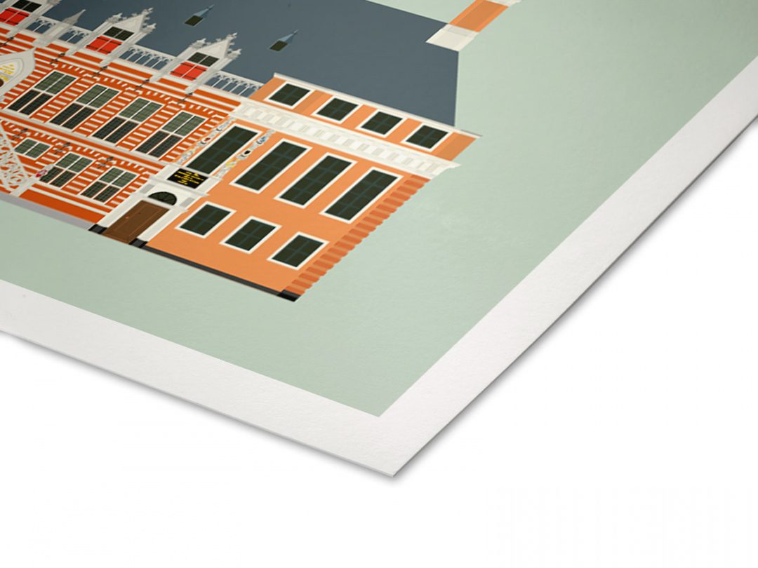 Print van Stadhuis Alkmaar op Hahnemühle Hemp® museumkwaliteit papier. Om de afbeelding zit een witrand van 1 cm. Door de extra witrand is de foto makkelijker in te lijsten zonder dat er beeld wegvalt achter bijvoorbeeld een passepartout. Een print met een afbeelding van 30 x 20 cm is dan totaal 32 x 22 cm groot.