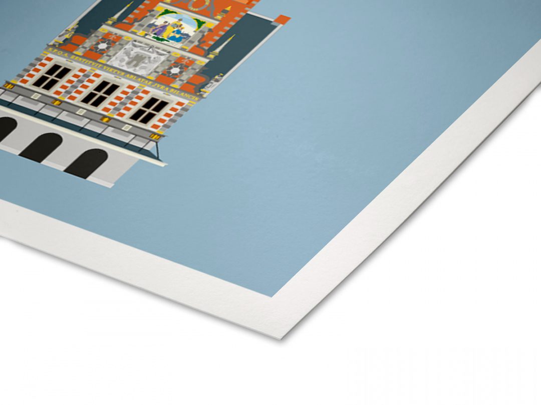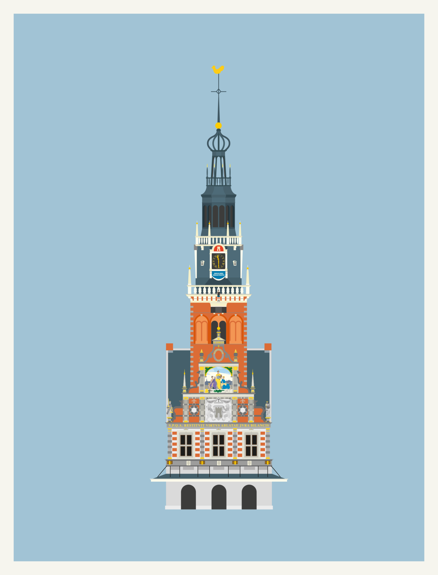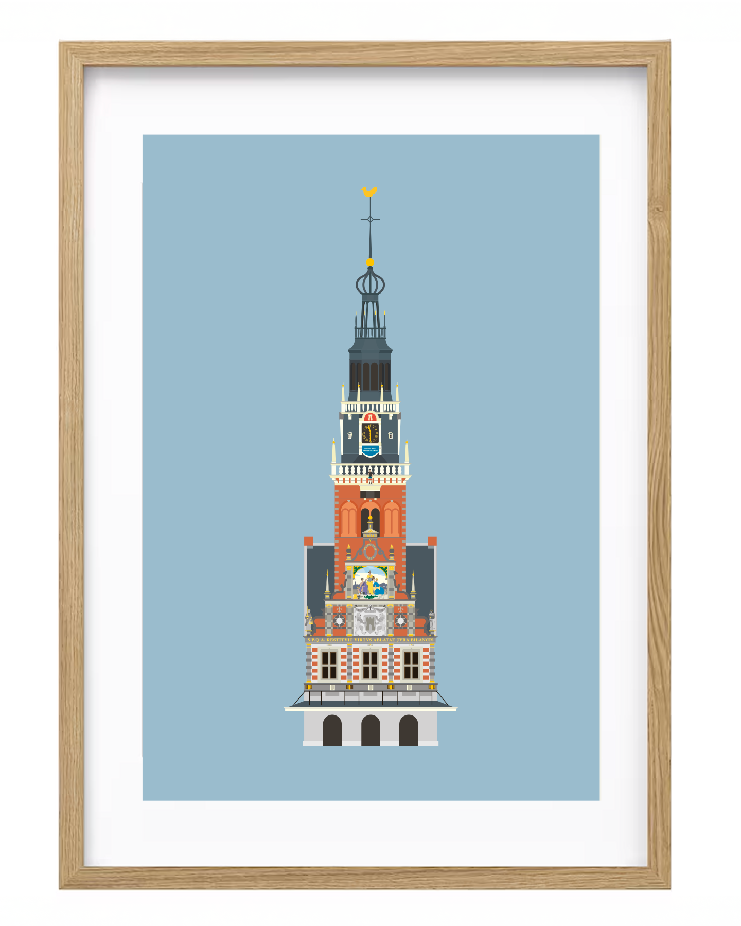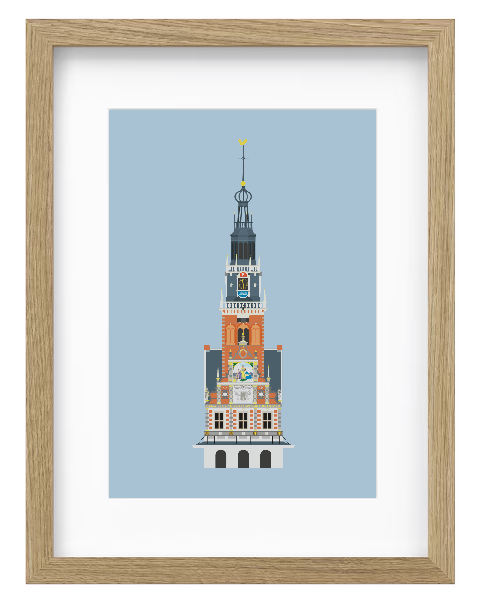 Print van de Waag aan de kaarsmarkt in Alkmaar op Hahnemühle Hemp® museumkwaliteit papier. Om de afbeelding zit een witrand van 1 cm. Door de extra witrand kun je de foto makkelijker inlijsten zonder dat er beeld wegvalt achter bijvoorbeeld een passepartout. Bij bijvoorbeeld een afbeelding van 20 x 30 cm is de print 22 x 32 cm groot.